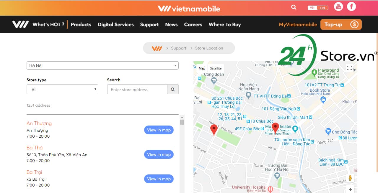 Cụ thể, để biết danh sách các cửa hàng uỷ quyền đổi SIM 4G, bạn có thể kiểm tra Danh sách cửa hàng tại: vietnamobile.com.vn/ho-tro/danh-sach-cua-hang. Chọn một thành phố/tỉnh bất kỳ, sau đó hệ thống sẽ đưa ra các cửa hàng gợi ý. Tìm cửa hàng có mục ghi chú điểm đổi SIM 4G miễn phí để đến đổi SIM.