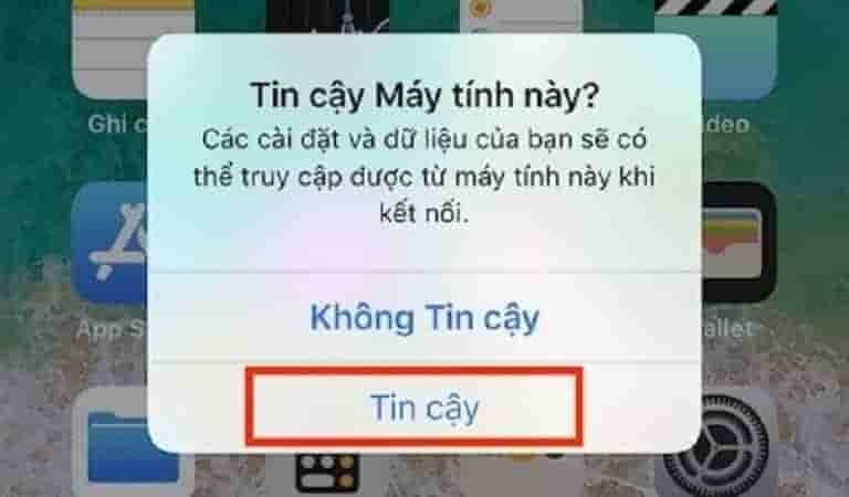 Với bước này, trước tiên hãy kết nối chiếc điện thoại của bạn với máy tính. Lưu ý phải đúng chiếc máy tính đã được cài đặt iTunes trước đó. Trên máy bạn chọn “Tin cậy” để truy cập vào iTunes.